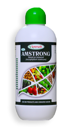 AMSTRONG is used to promote plant growth at the fruiting / flowering stage and over all nutrition value of the plant. The plants absorb essential elements throughtheir leaves which leads to improved growth of leaves, branches, fruits and flowers. Armstrong contains macro, micro and secondary nutrients, amino acids, vitamins,proteins, carbohydrates and minerals naturally present in seaweed (Ascophyllan nodosum).